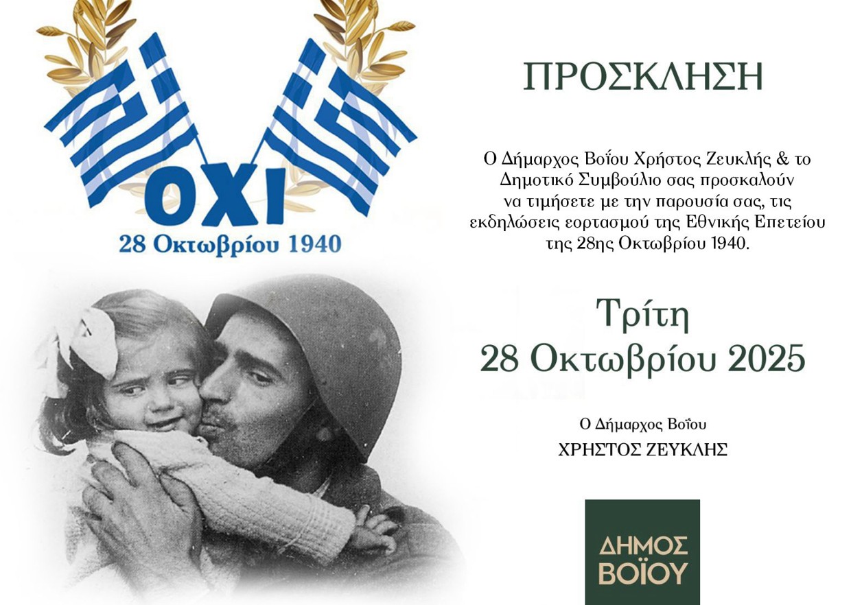 Δήμος Βοΐου: Πρόγραμμα Εκδηλώσεων εορτασμού Εθνικής Επετείου 28ης Οκτωβρίου 1940