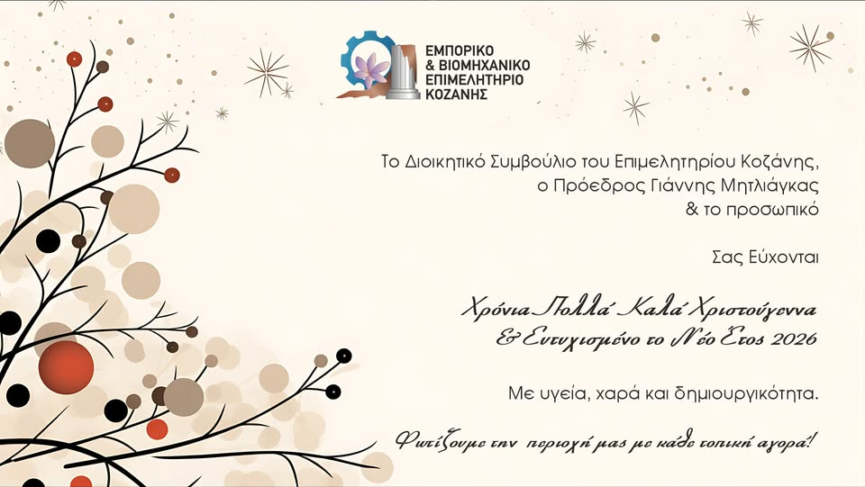 Ο Πρόεδρος και το Διοικητικό Συμβούλιο του Εμπορικού Συλλόγου Σιάτιστας εύχονται σε όλους καλές γιορτές, με υγεία, χαρά και προκοπή.