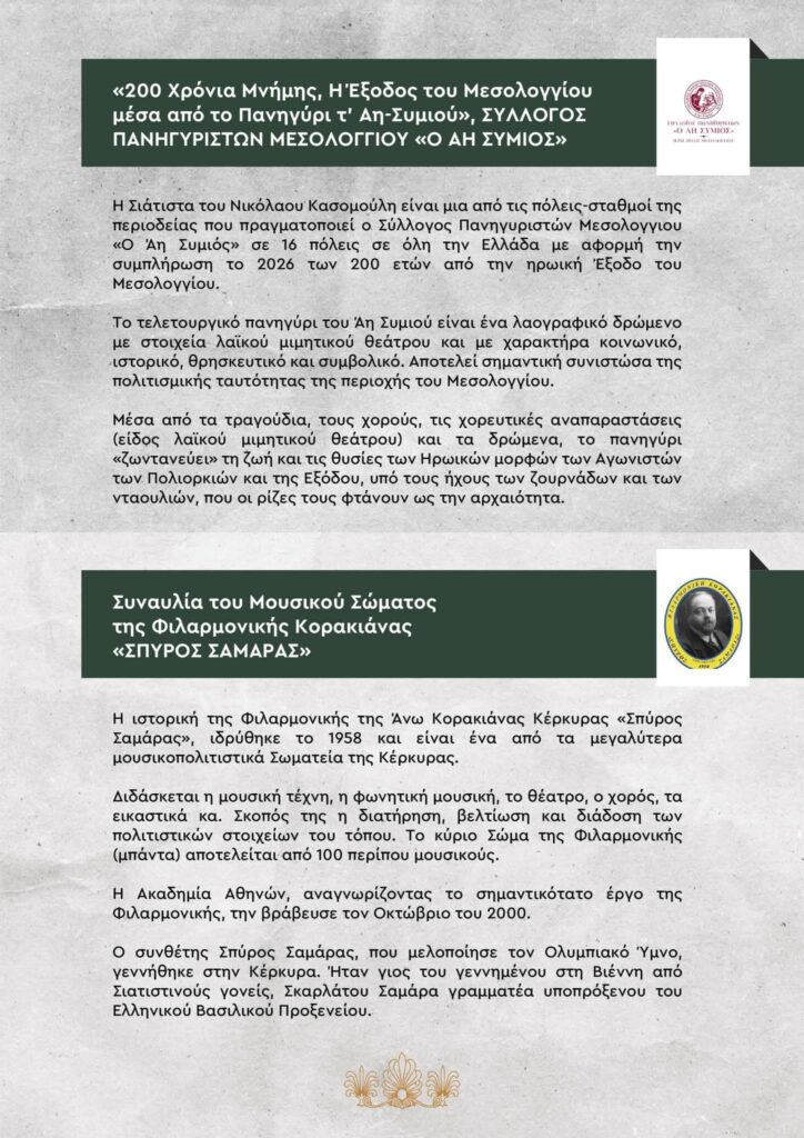 Δήμος Βοΐου: Εκδήλωση με θέμα: «200 Χρόνια Μνήμης, Η Εξοδος του Μεσολογγίου μέσα από το πανηγύρι τ’ Αη-Σημιού» στη Σιάτιστα